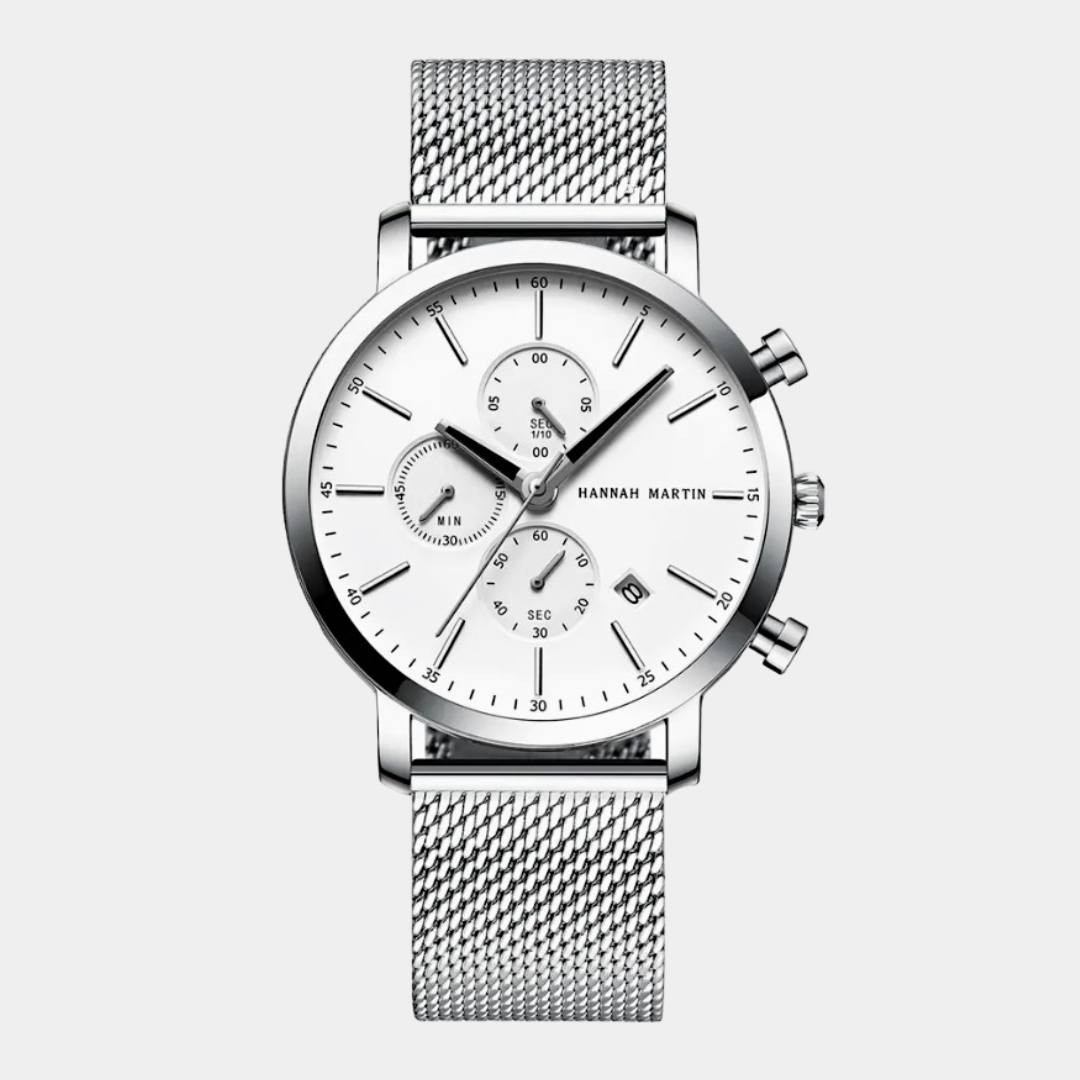 Nossa coleção Icônico Luxo foi desenhada pensando na versatilidade, você pode combiná-la tanto com uma roupa elegante quanto com uma roupa casual/social. O modelo luxo possui uma pulseira de aço inoxidável facilmente ajustável e um mostrador com indicador de data e cronógrafo, o que também o torna um relógio esportivo.